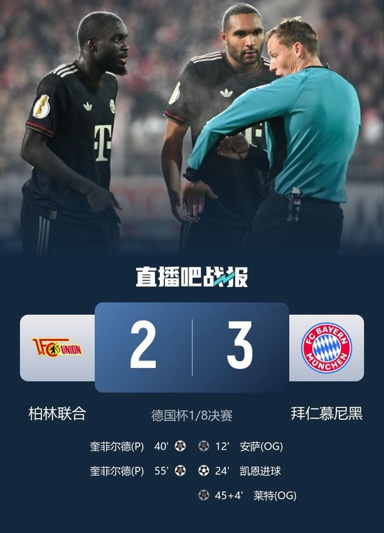 奎菲尔德点射双响!柏林联合再追一球,柏林联合2-3拜仁!↓